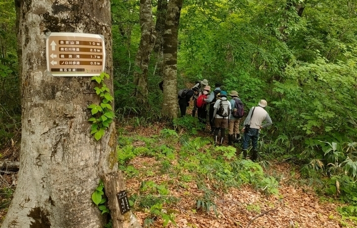 普段使われる桃洞滝コースではなく、今回は往路に黒石川登山道を使いました。