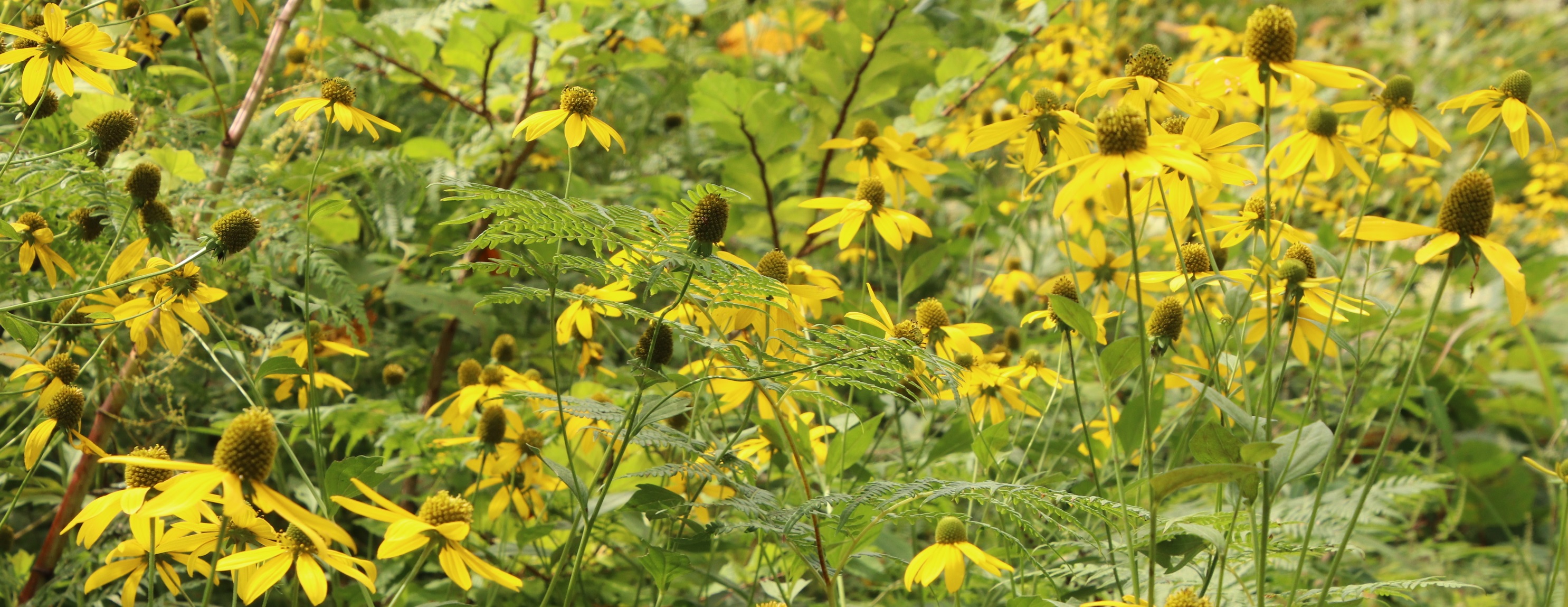 特定外来生物に指定されている、オオハンゴンソウの満開の様子です。