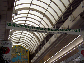同商店街では、今年、老朽化したアーケードをリニューアルしましたが、その際、当省の石油特別会計による補助を受けて省エネタイプの照明を導入し二酸化炭素の排出削減に取り組みました。また、今後も、「環境にやさしい商店街」として、省エネ、ごみ減量などの環境活動に積極的に取り組んでいくことになりました。