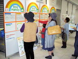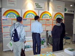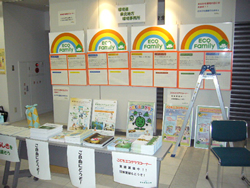 環境省ブースとして、我が家の環境大臣事業のパネル展示、パンフレット等の配布及び事業内容を説明し、エコファミリー登録加入の呼びかけを行いました。