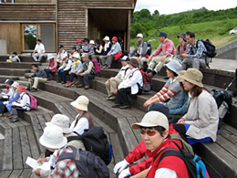 センター脇のレクチャー広場でオープニングの様子。ここはクマゲラの森を正面に見ながら、センター解説員の説明を受けられるようになっています。