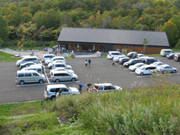集合場所の森吉山野生鳥獣センター駐車場は他の行事とも重なって満杯