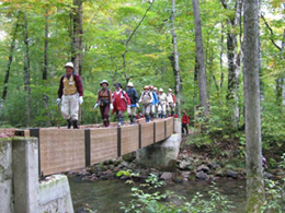 森吉山野生鳥獣センターと同運営協議会、秋田県の共催で、赤水渓谷の散策とブナの植樹体験を実施しました。