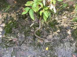 センターの裏を流れる立川の飛び石を渡って赤水渓谷に向かって出発