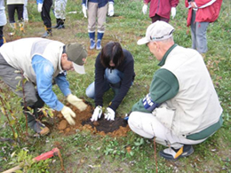 最年少で参加の浜田君(9歳)はがんばって3本植樹