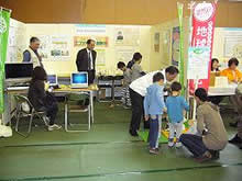 環境省ブースとして、我が家の環境大臣事業のパネル展示、地球温暖化防止関連パネル展示、パンフレット等の配布及び事業内容を説明し、「エコファミリー登録加入」・「☆eco宣言」の募集、「こどもエコクラブ」募集について呼びかけを行いました。