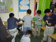 そのほか、手回し発電機によるプラモデル遊び、白熱灯と蛍光灯とのエネルギー量の違いなどについて、体験していただきました。